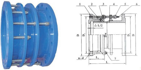 伸縮接頭系列產(chǎn)品屬金屬制品、其有較高的抗拉和抗壓強(qiáng)度,軟密封性能優(yōu)越,安裝拆卸方便等功能,被廣泛應(yīng)用于電力、冶金、化工、給排水和污水處理等行業(yè),主要作用于水泵于閥門和管道之間的連接。雙法蘭限位伸縮接頭在管道運(yùn)行中有一定的多向位移作用,對管道在運(yùn)行中由于熱漲冷縮、地殼下陷和受力產(chǎn)生著重要的伸縮補(bǔ)償作用,因此,伸縮接頭可以緩解管道運(yùn)行中的盲板推力,對管道起到一定的保護(hù)作用,特別是對管道的安裝和維修提供了極大的便利。但是,在水泵出口處和管道轉(zhuǎn)角處,在無固定支墩、無限位支墩和定向限為支墩支架的滑動管道連接中應(yīng)采用傳力接頭限位伸縮器(伸縮節(jié))和防拉脫限位橡膠接頭,因?yàn)閭髁宇^通過傳力螺栓(即全絲螺栓)能把啟泵時(shí)的盲板推力傳導(dǎo)到泵和管道各部位,避免推力集中于管道轉(zhuǎn)角處或泵的近端,發(fā)生沖擊力損傷設(shè)備。